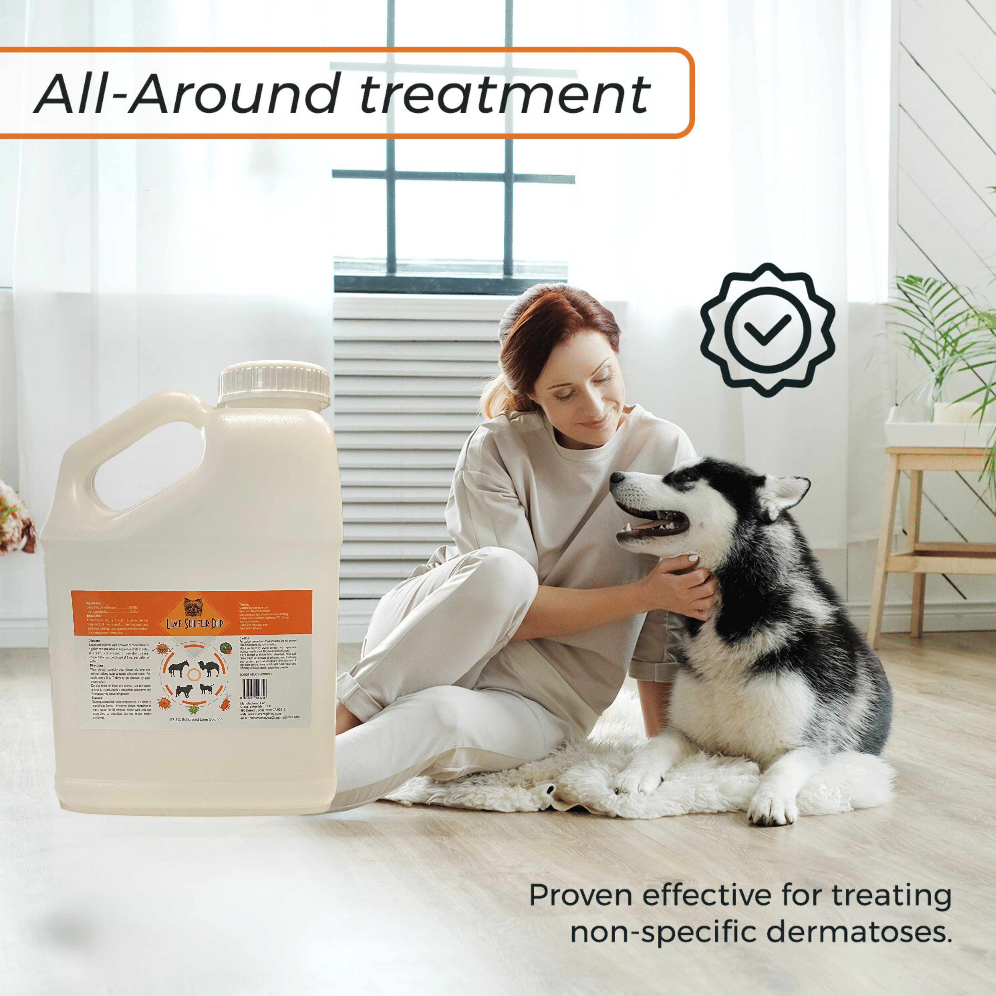 1.ALL-AROUND TREATMENT - Unsure of what’s causing your pet’s skin problem? Our lime sulfur dip has been proven effective for treating non-specific dermatoses. It also gets rid of parasites!